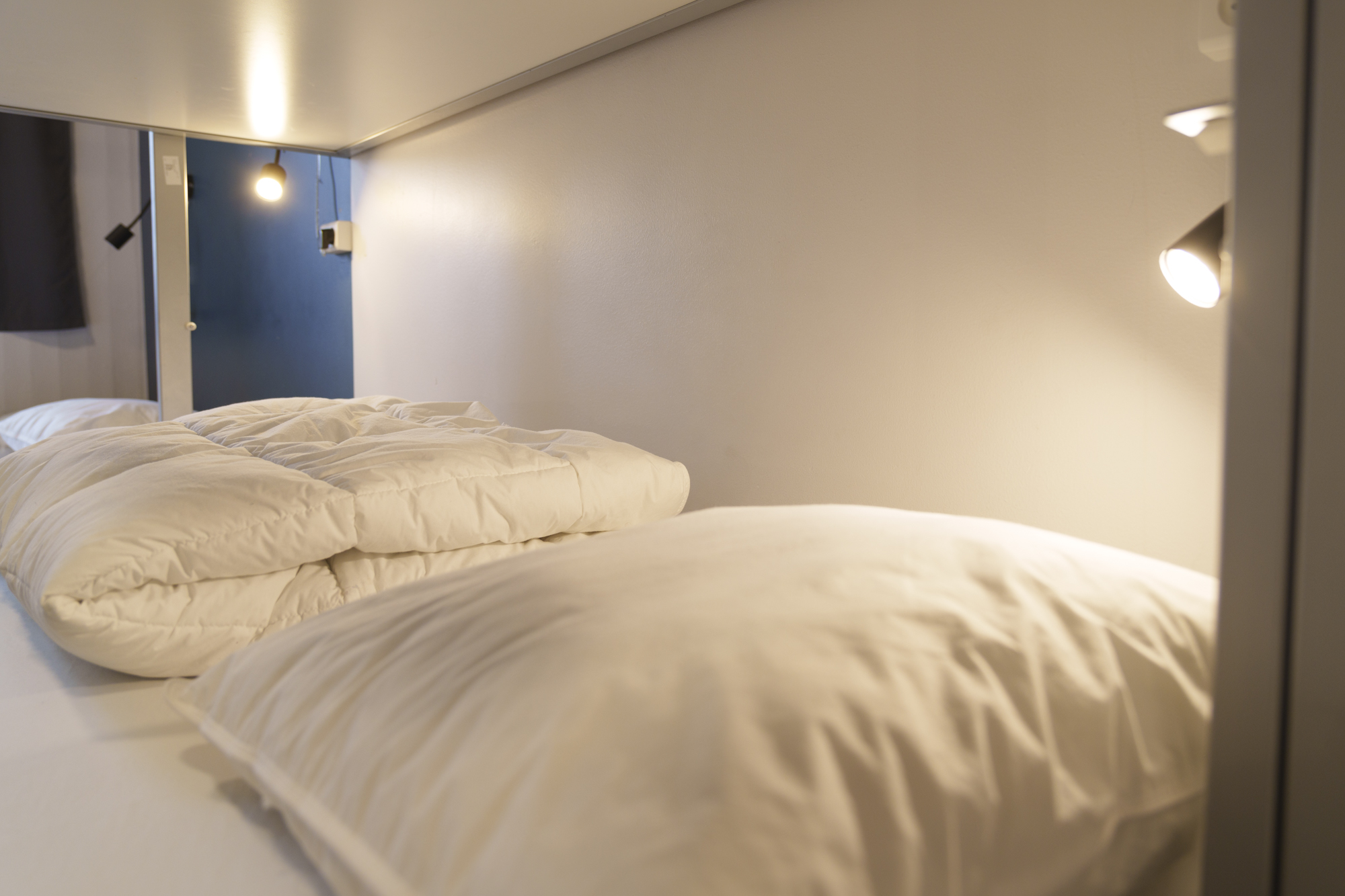 Vores køjesenge er udstyret med luksus boksmadrasser, privat læselampe og stikkontakter – alt sammen for at sikre en komfortabel og afslappende søvn. Du har desuden adgang til vores veludstyrede gæstekøkken, bruserum og fælles toiletter.
